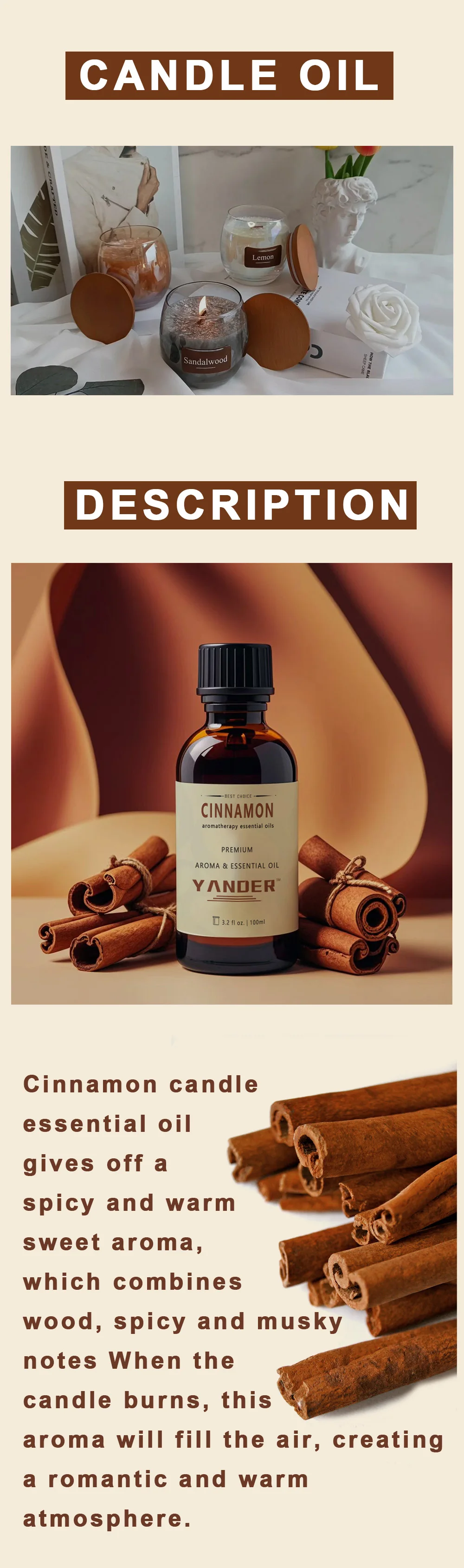 C028 Yander 100Ml Cinnamon Candle Oils for Scented Candle Making Christmas Essential Oils DIY Candle Fragrance Oil Warm Christma